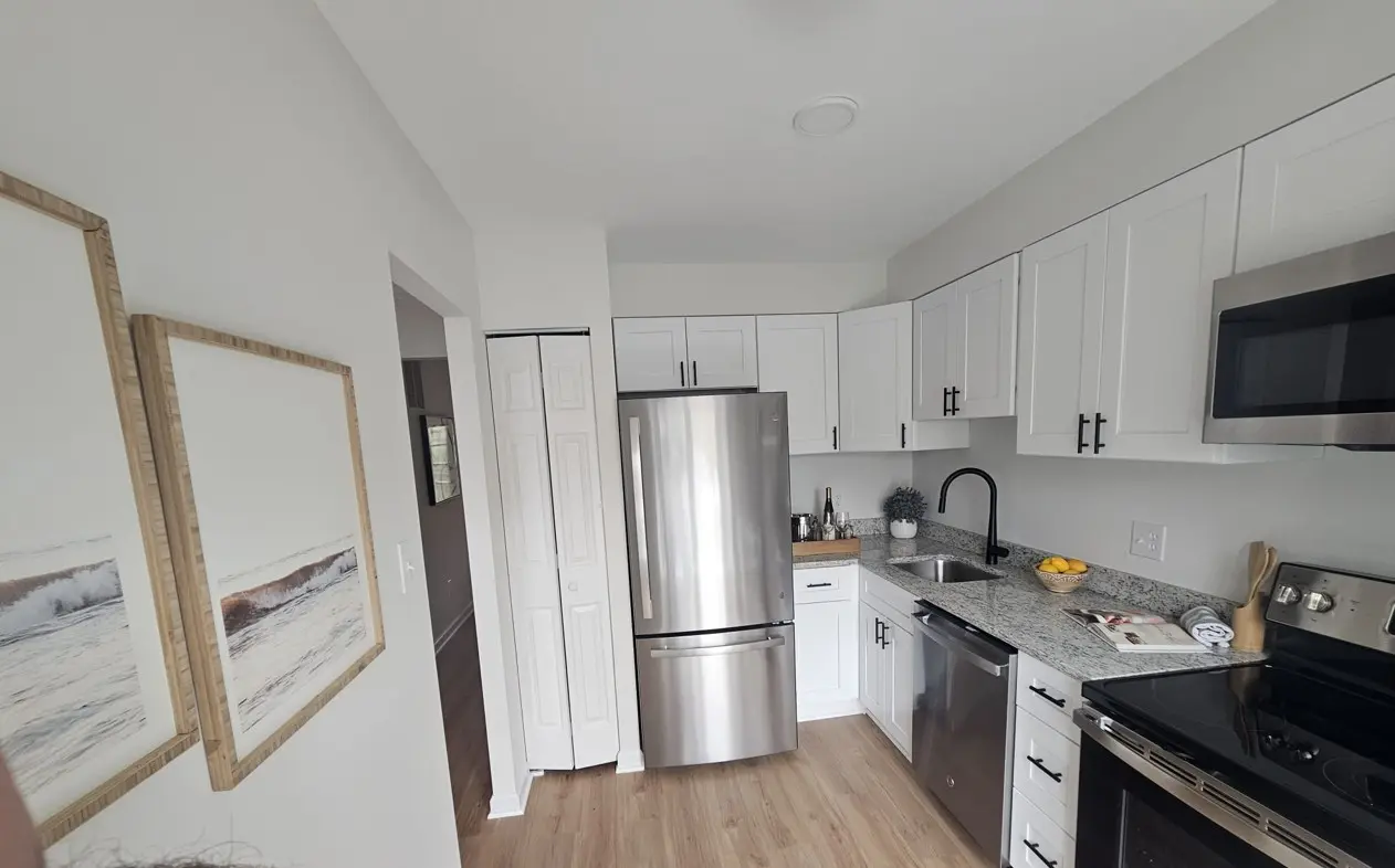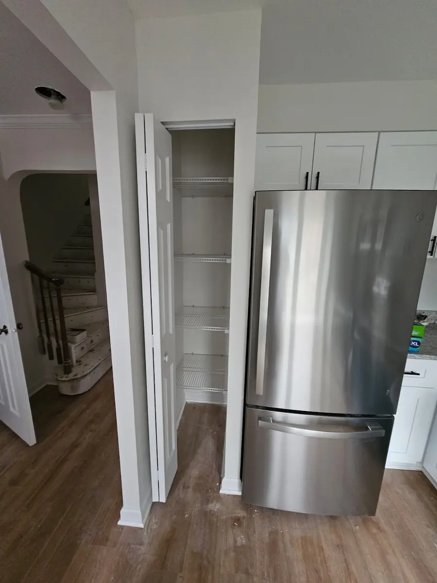 For this project, we used a variety of specialized components and tools. The air purifier was essential to eliminate moisture in the drywall, while the anti-mold paint ensured a healthy, fungus-free environment. The 1/4 turn valves and copper water line with the Propress system offered long-lasting, leak-free solutions. Additionally, new appliances and modern lighting significantly improved the functionality and appearance of the kitchen. The 7ml LVP flooring provided a durable and aesthetic surface.