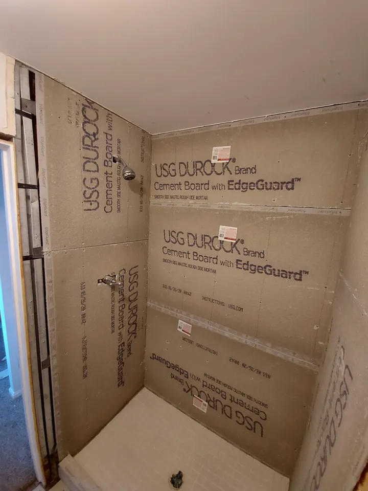 The components used in this project were selected for their durability and performance. The shower liner ensured effective waterproofing, preventing future leaks. Cement mortar provided a solid base for the new tiles, ensuring they stay in place. Durarock was used on the walls for its superior moisture resistance. The new sliding shower door added a modern touch and improved accessibility.