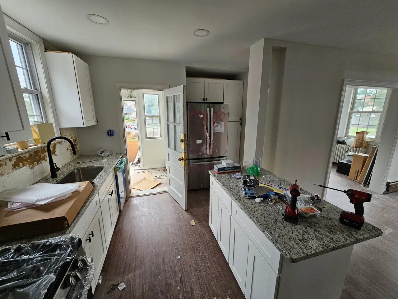 In May 2023, our team at Cacheiro Remodeling completed an extensive kitchen renovation in Washington, DC. The project involved removing a wall to create more space, installing a 7-foot beam for structural support, and updating the plumbing with PEX A pipes. We also relocated the refrigerator and switch box, installed new candle lights, and fitted granite cabinets. The entire project took four weeks, ensuring thorough structural and plumbing inspections.